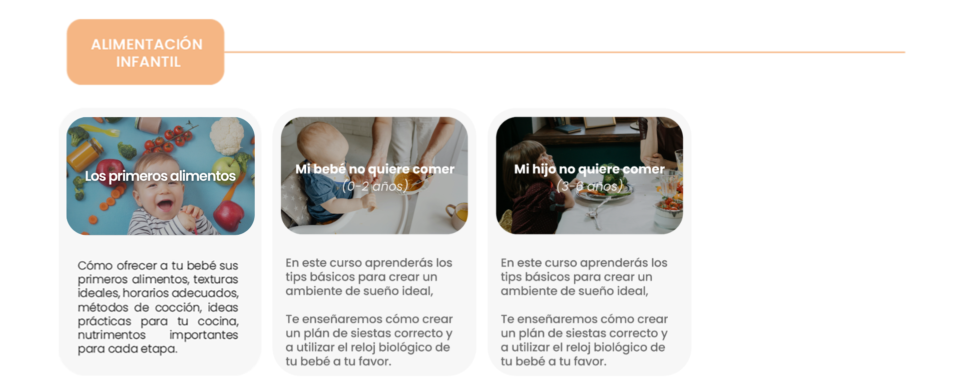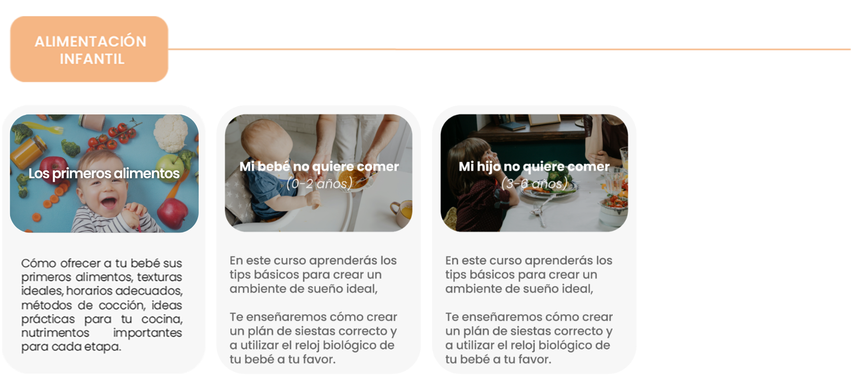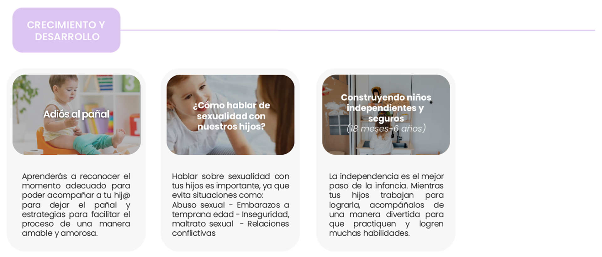 En cada una las áreas encontrarás diversos cursos y/o talleres en los cuáles podrás adquirir herramientas y recursos que favorecerán el desarrollo de tu peque y te acompañarán durante tu m/paternidad.